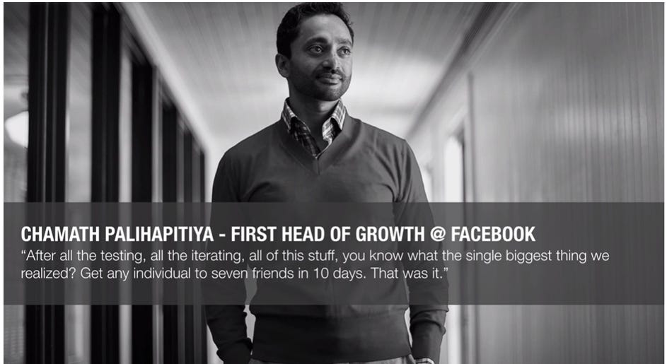 When Sheryl Sandberg started as COO, she had a conversation with Chamath Palihapitiya, the first Head of Growth at Facebook. When she asked Chamath what he wanted to focus on he said, “I'm going to focus on changing the product, doing some SEO, some SEM, applying some algorithms, et cetera.”